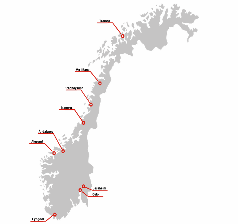 Sammen med våre kunder arbeider vi for å utvikle de mest bærekraftige og miljøvennlige løsningene for en rekke bransjer, som spenner over hele Norges næringsliv. Vår dedikasjon strekker seg utover Ålesund, da vi har et nettverk av forhandlere spredt over hele Norge, inkludert Tromsø, Trondheim, Brønnøysund, Oslo og flere andre steder. Dette gjør at vi er tilgjengelige for å betjene våre kunder i ulike regioner og bransjer.
