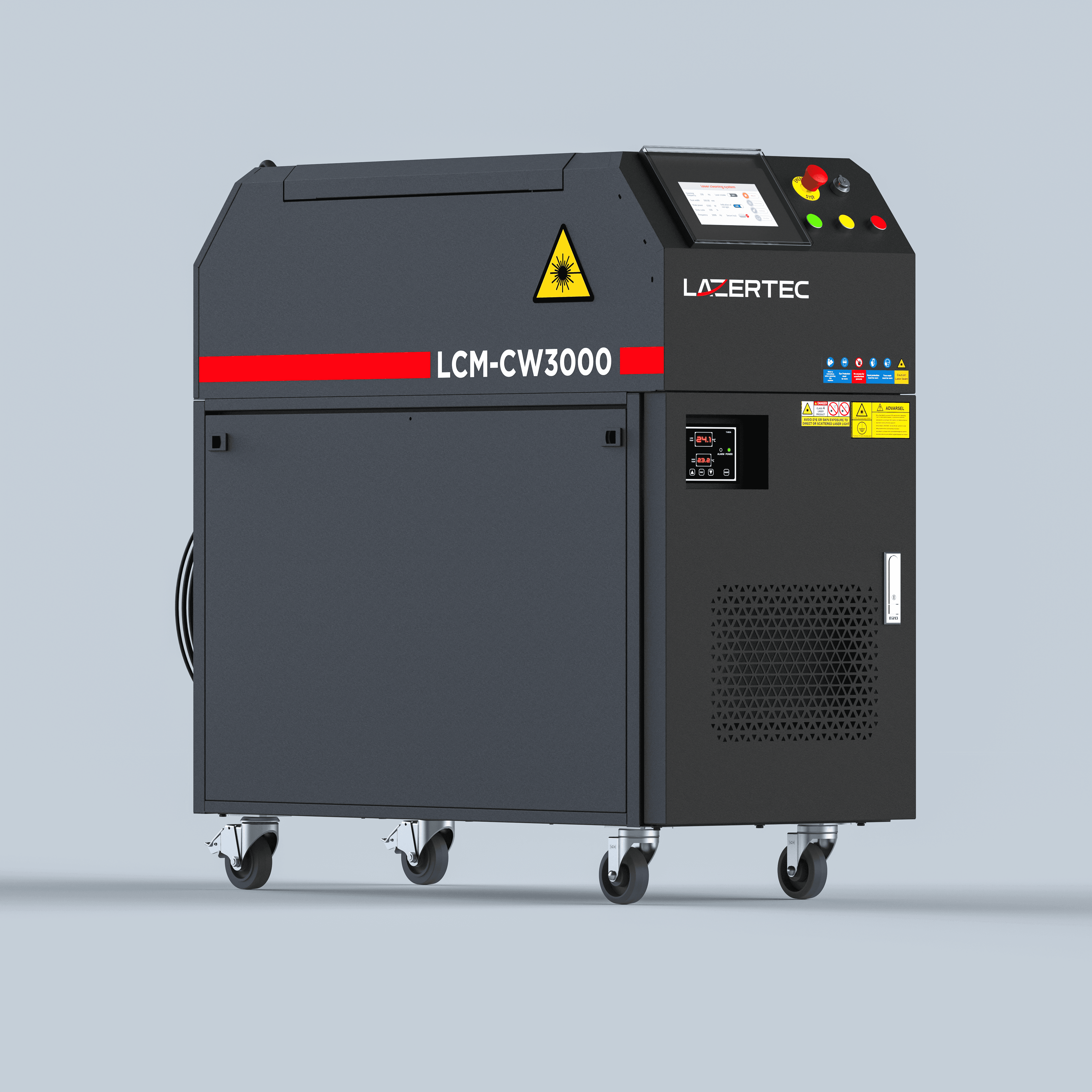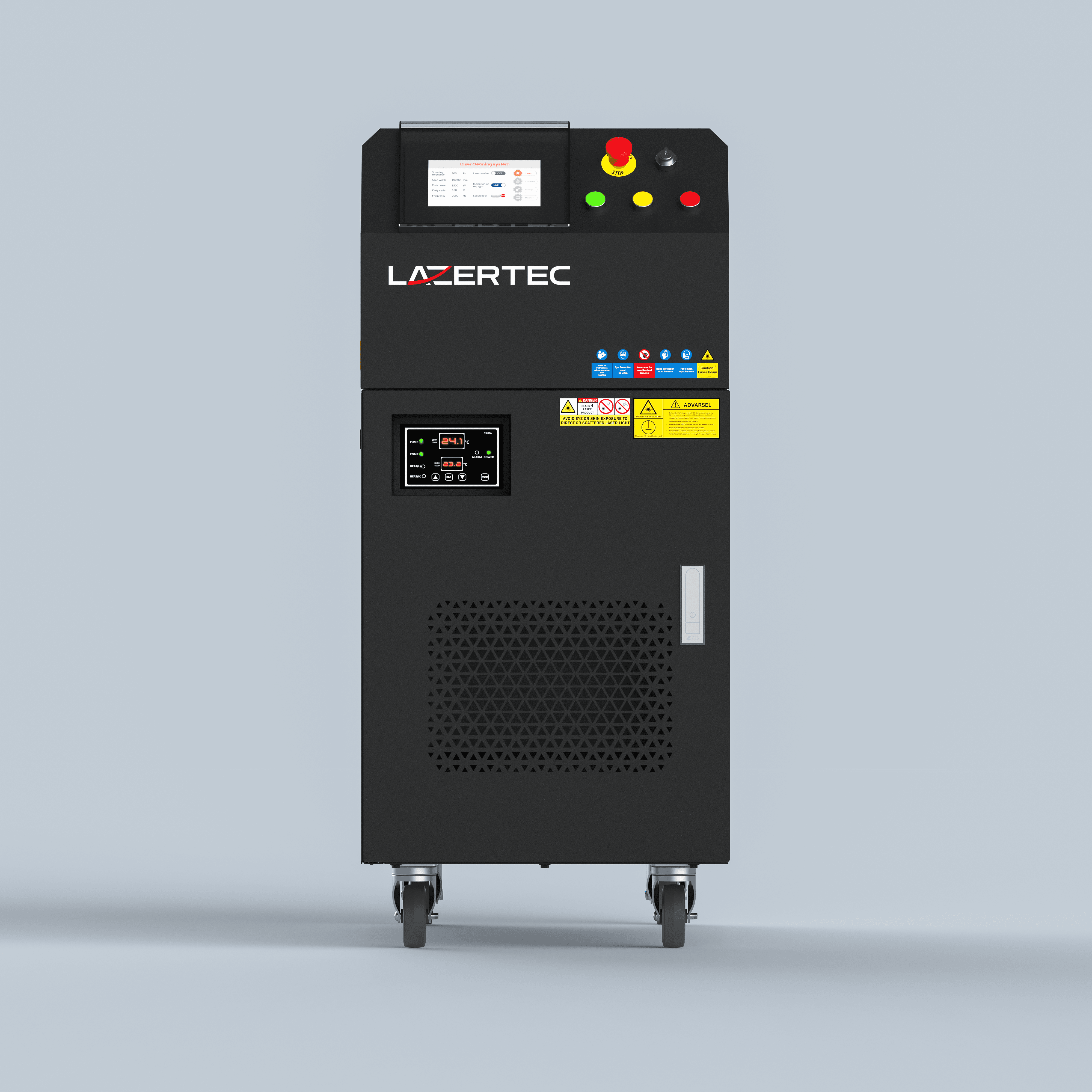 Våre lasermaskiner har et robust industridesign som er utviklet for tøffe arbeidsmiljøer og daglig bruk. Samtidig er maskinene mobile og enkle å transportere, med solide industrihjul som gjør dem lette å flytte mellom arbeidssteder. Dette gir fleksibel tilgang til laserbehandling der behovet oppstår.